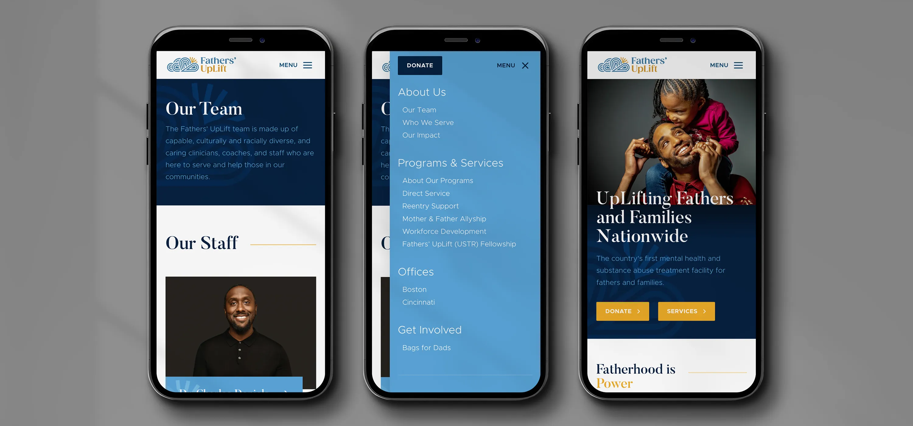 The final design gave Father’s Uplift a bold, recognizable presence. The new iconography and web design improved clarity, consistency, and user engagement—helping the organization better connect with its community.