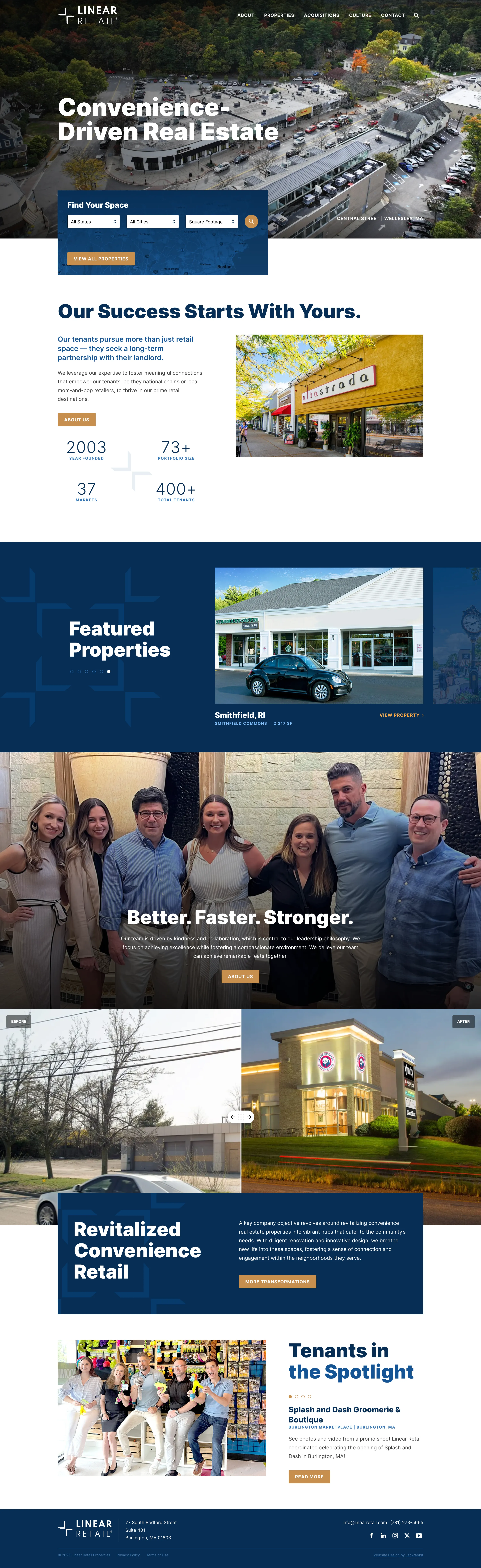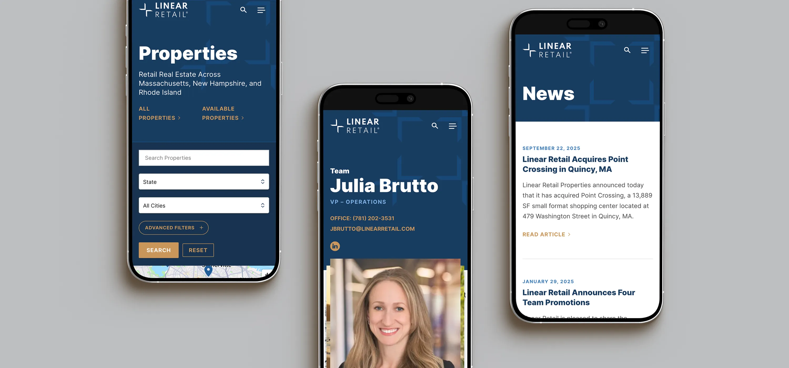 Linear Retail’s website didn’t fully reflect their business model of revitalizing retail properties across New England. Its content architecture and design lacked clarity around their services, portfolio presence, and value proposition, which made it harder for potential tenants, investors and brokers to grasp the brand’s strengths.